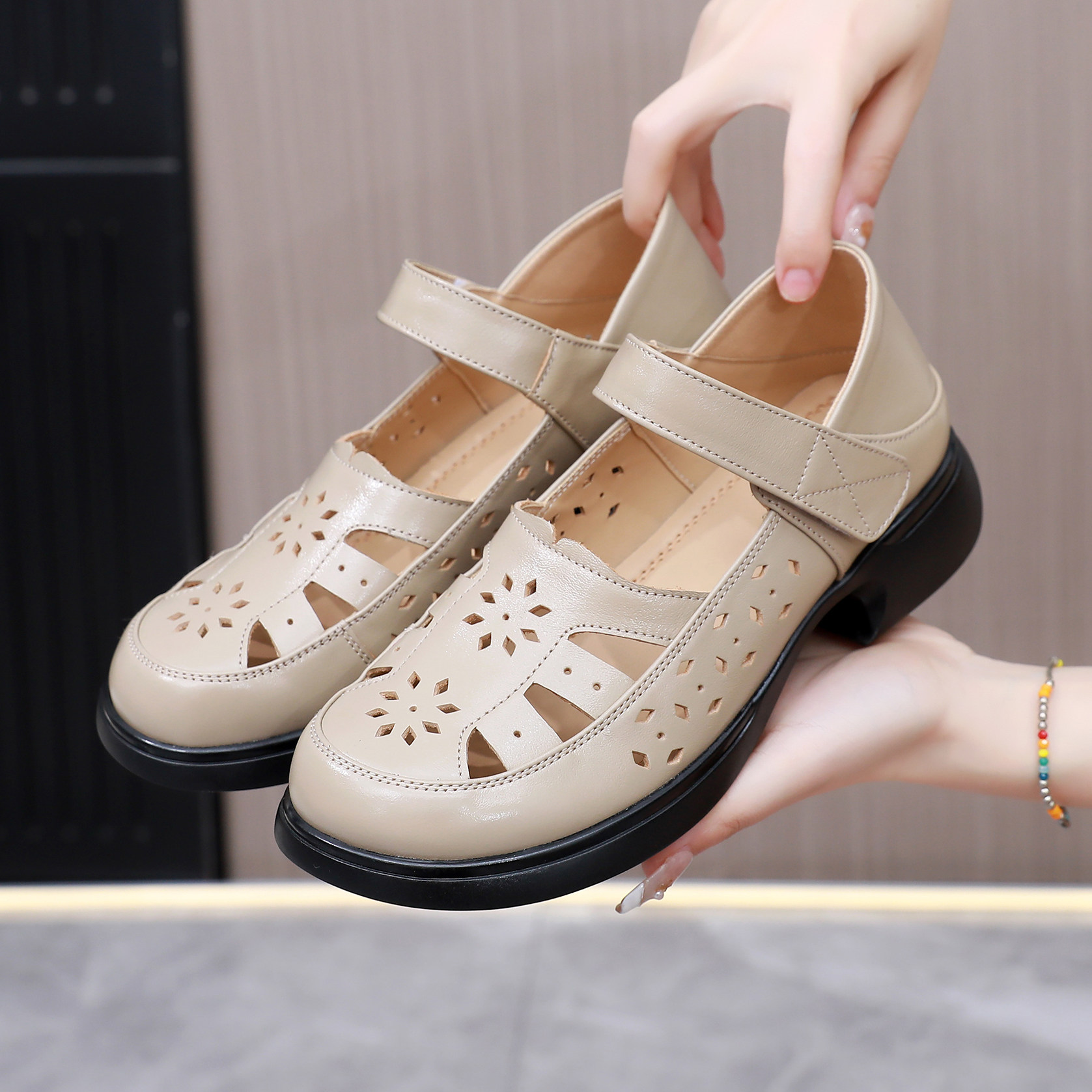 这款罗马凉鞋女软底真皮大码低跟妈妈鞋,专为追求舒适与时尚兼顾的女性设计。采用优质真皮材质,柔软透气,搭配厚底低跟设计,行走稳健,久穿不累。复古镂空与罗马绑带元素相融合,个性十足,尽显优雅气质。鞋面多洞洞设计,夏季穿着清凉透气,有效排汗防闷。专为大码脚型优化,包容性强,贴合脚型不磨脚。无论是日常出行、休闲逛街还是度假旅行,都能轻松驾驭,是妈妈辈及成熟女性夏季的理想之选,兼具实用性与时尚感,舒适从“脚”开始。