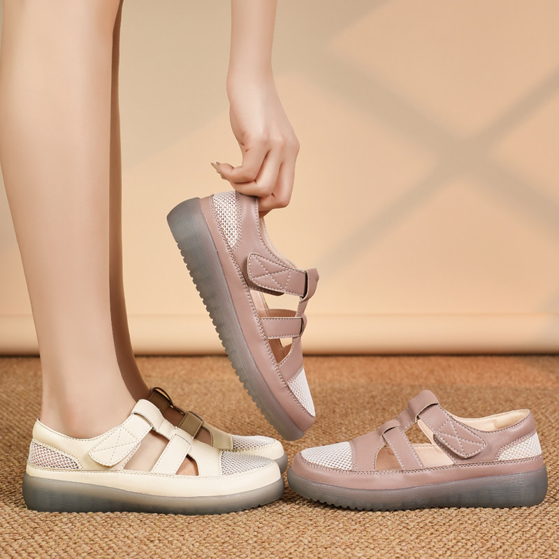 淘宝不累脚牛筋底妈妈凉鞋2026夏季新款外穿软底防滑罗马凉鞋网面透气