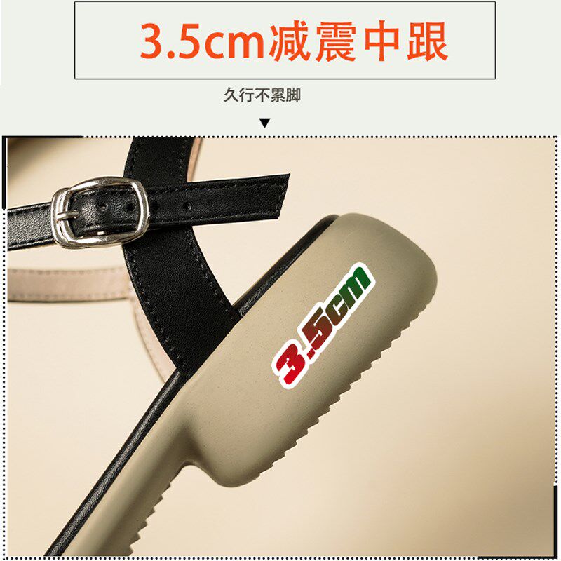 孙艺珍同款2026新款粗跟方头一字带凉鞋女夏真皮交叉带罗马高跟鞋