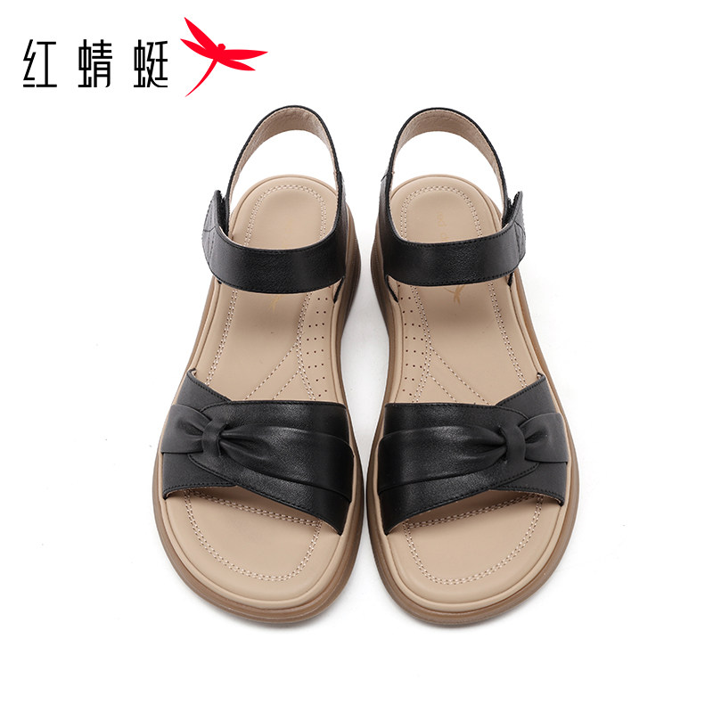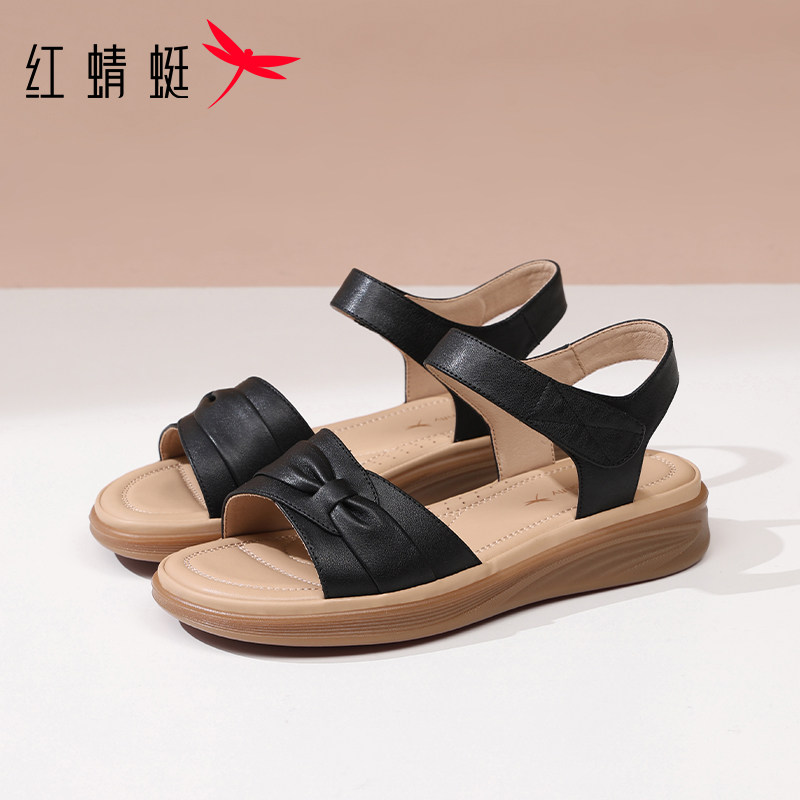 淘宝红蜻蜓2026夏季新款头层牛皮软底轻便黑色防滑凉鞋女青年妈妈凉鞋