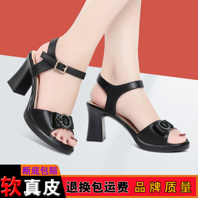 淘宝水钻搭扣款通勤女士凉鞋夏季洋气百搭妈妈鞋轻便软底耐磨走秀鞋子