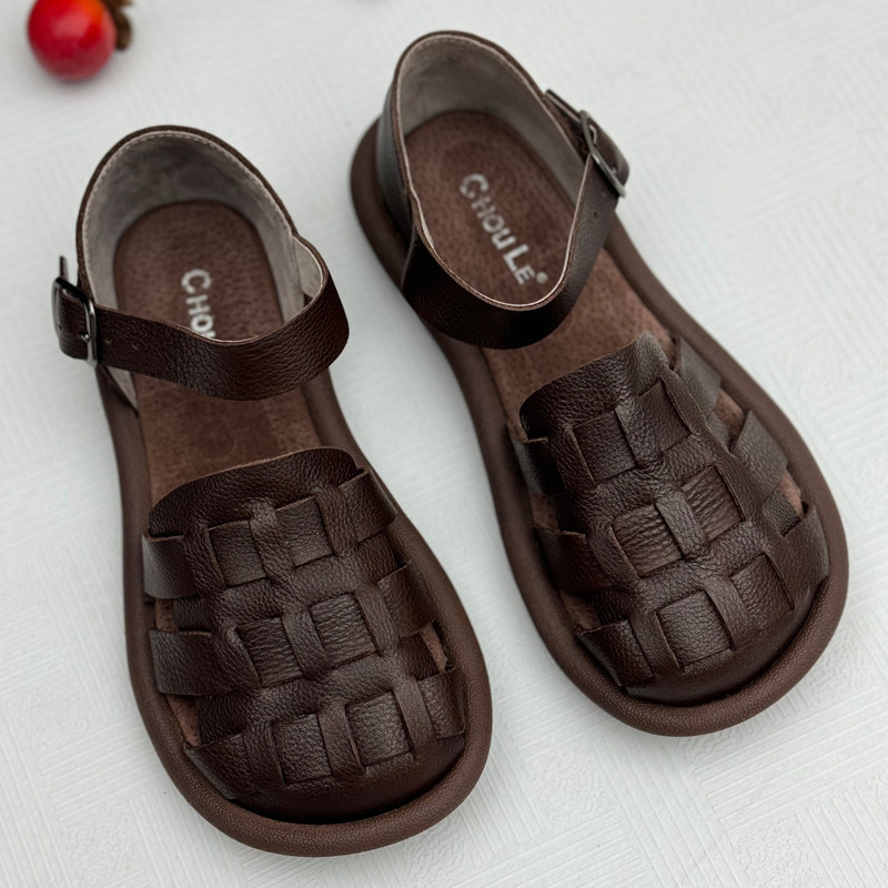 淘宝手工真皮复古妈妈凉鞋2025新款夏季女鞋包头凉鞋中老年罗马凉鞋