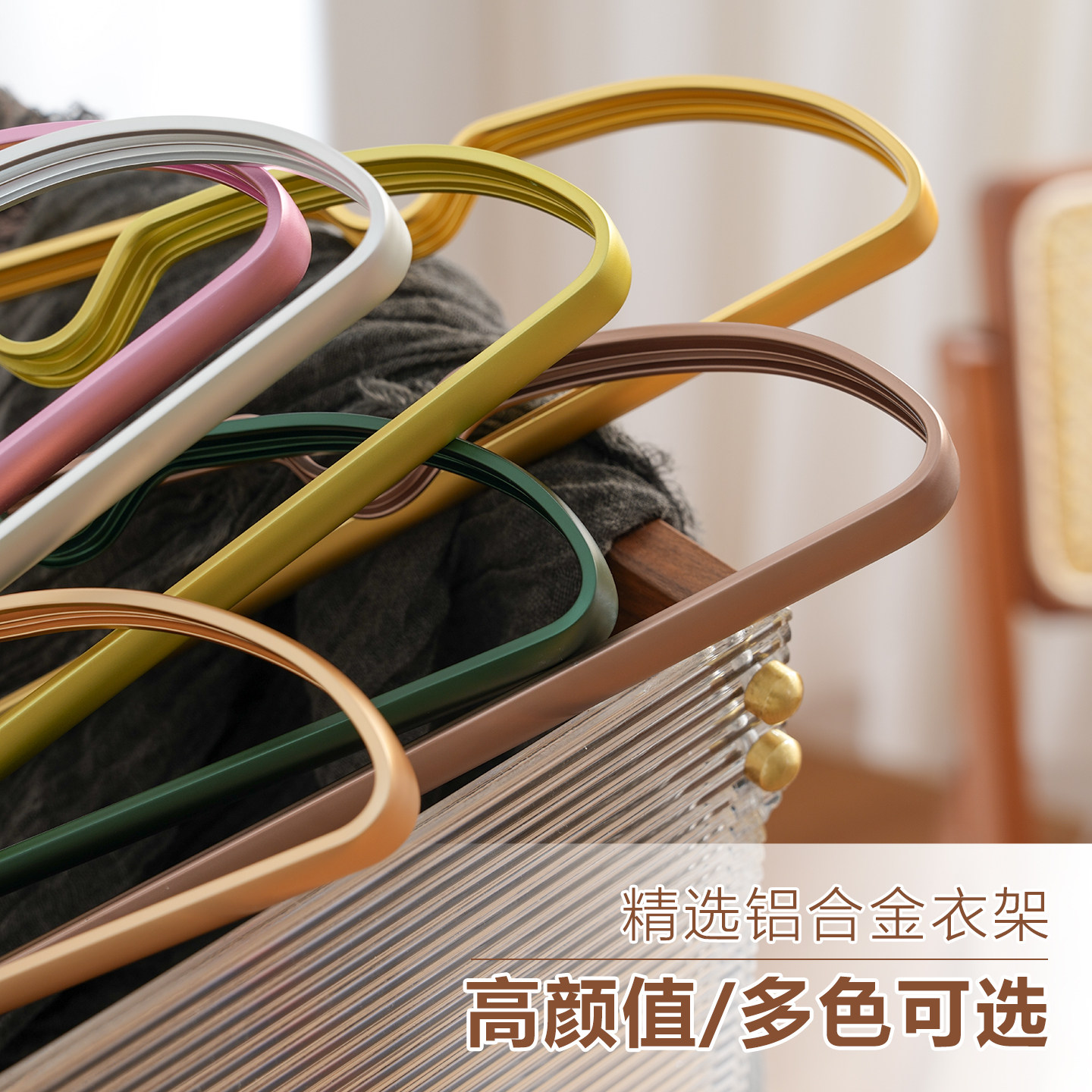 天金属铝合金衣架家用轻奢高端挂衣架防滑无痕收纳加粗加大晾衣撑子