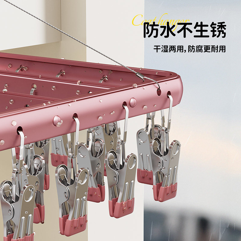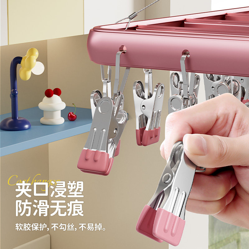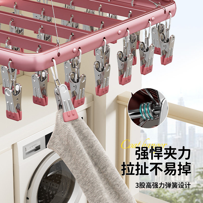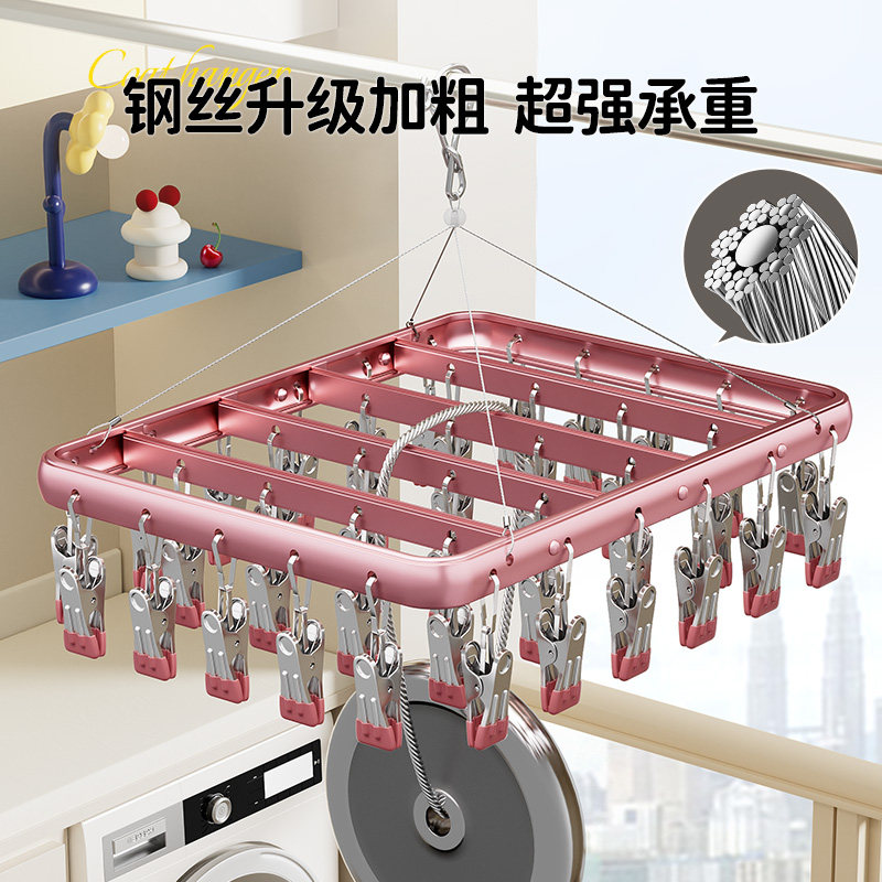 天猫喜家家铝合金袜子晾晒架家用多阳台功能内衣裤夹衣架带多夹子
