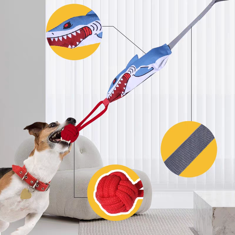 这款狗狗互动拉扯发声玩具专为柯基等中小型犬设计,采用优质棉绳编织成鲨鱼造型,兼具趣味性与实用性。内置发声装置,轻轻一拉即可发出“吱吱”声,激发狗狗狩猎本能,提升玩耍兴趣。棉球与绳结结构耐咬耐磨,适合拔河、拉扯等互动游戏,既能锻炼狗狗咬合力,又能增进主人与爱宠的感情。安全无毒材质,呵护狗狗口腔健康,同时帮助磨牙、缓解焦虑、打发独处时光。无论是室内解闷还是户外互动,这款多功能玩具都是中小型犬的理想伴侣,让狗狗在快乐中保持活力与健康。