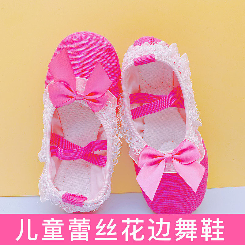 淘宝儿童舞蹈鞋女童花边芭蕾舞鞋考级软底练功鞋女练舞鞋猫爪鞋演出鞋