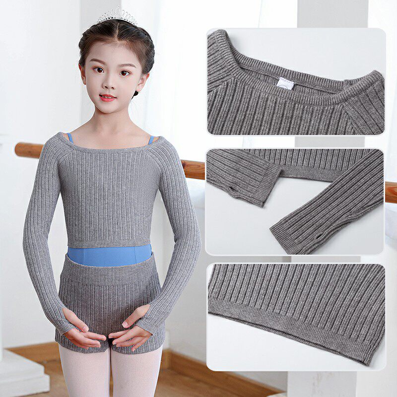 淘宝儿童舞蹈毛衣外套灰色秋冬季练功服中国舞芭蕾舞长袖披肩外搭上衣