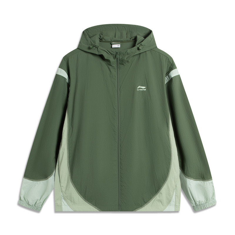 李宁男子外套2024春季新款团购休闲轻薄透气冰丝连帽风衣AFDU627