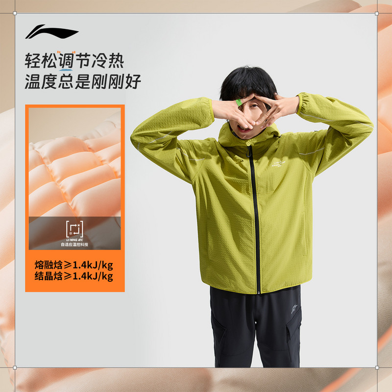 李宁男子外套2024春季新款团购休闲轻薄透气冰丝连帽风衣AFDU627
