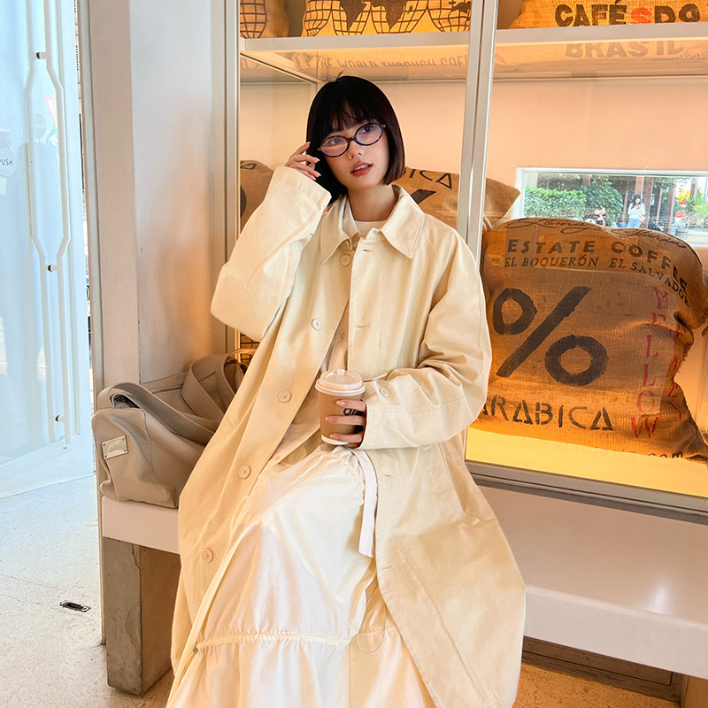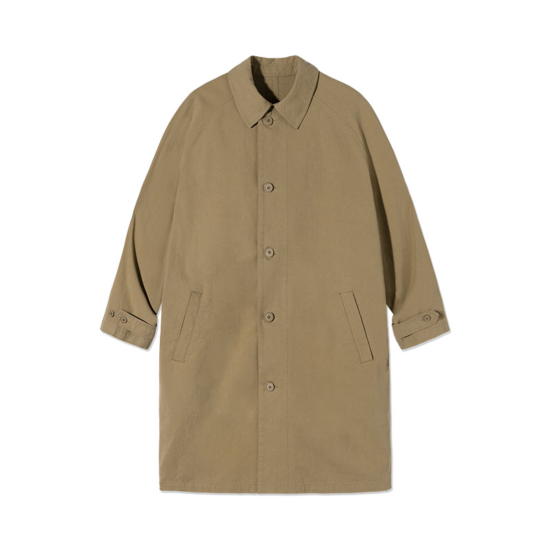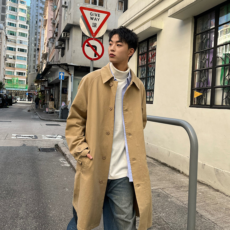 天太平鸟男装 猎装风衣男中长款潮牌男士杏色翻领宽松休闲外套男