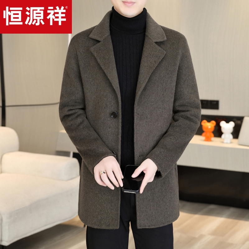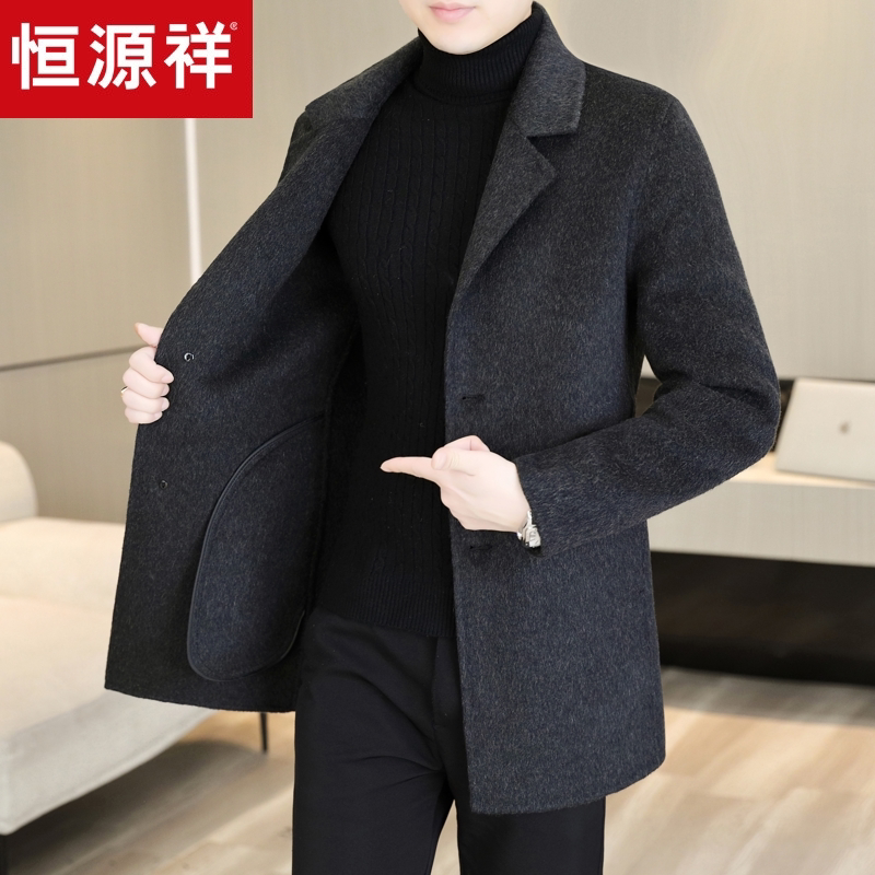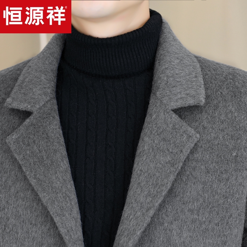 淘宝恒源祥西装领男士羊毛大衣秋冬季中长款风衣商务休闲双面呢外套男