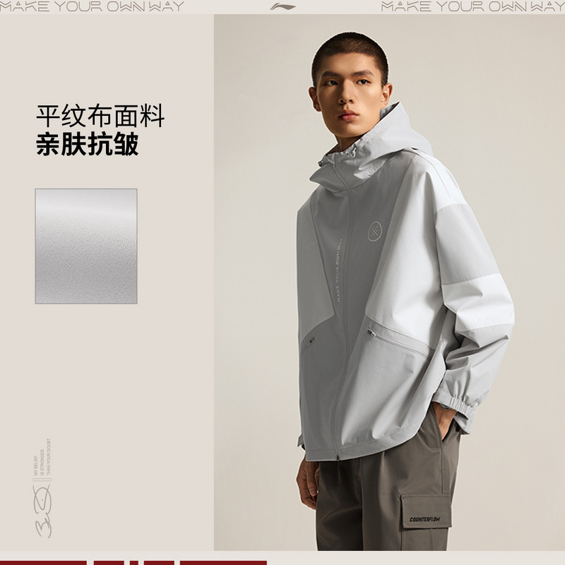 天猫李宁韦德系列男子潮流运动风衣防泼水时尚百搭外套AFDV027-B品