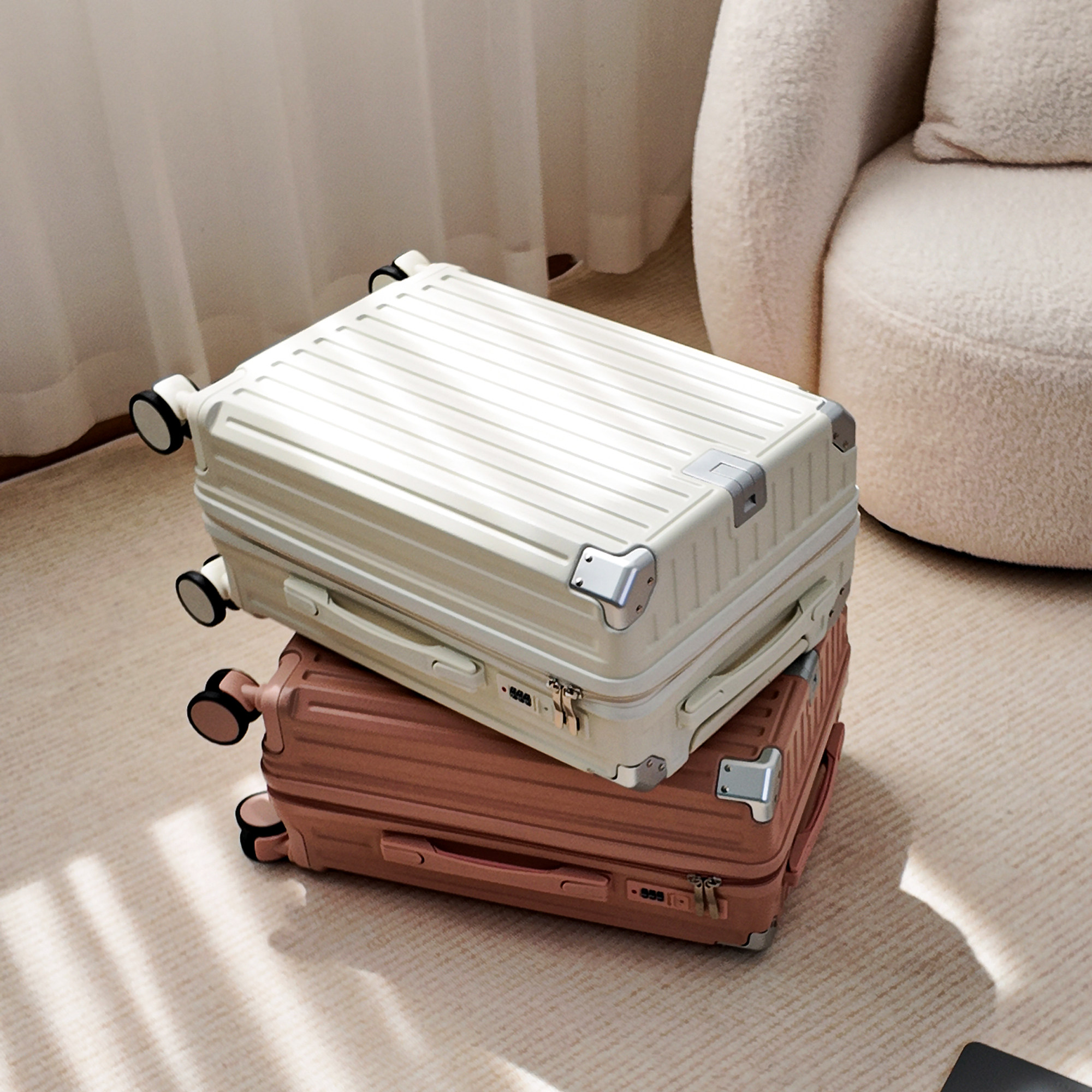 2026年新款女式行李箱,集时尚与实用于一体,推出20寸、24寸、28寸多种规格,满足不同出行需求。20寸登机箱小巧轻便,可随身携带,适合短途差旅或周末出行;24寸与28寸旅行箱容量充裕,适合长途旅行或家庭出游。采用高强度PC+ABS复合材质,抗摔耐磨,结实耐用。配备TSA海关密码锁,安全便捷;360°静音万向轮顺滑静音,推拉自如;加固拉杆稳固承重,多档调节更舒适。简约大气设计,多色可选,是女性出行的理想伴侣。