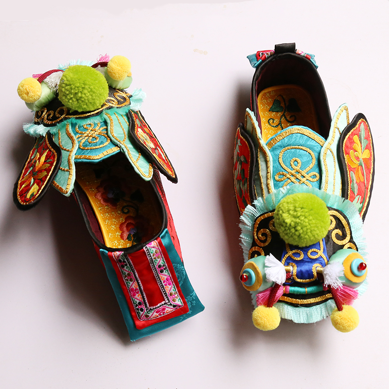 淘20非遗新款走绣坊重工立体龙头鞋手工绣花鞋复古平底民俗龙的传人