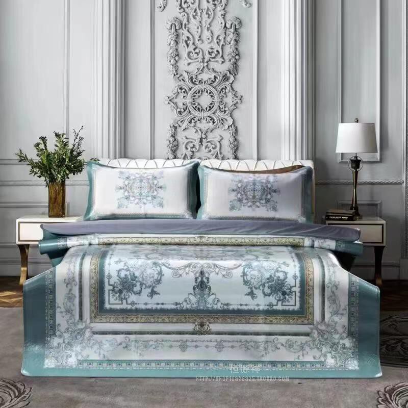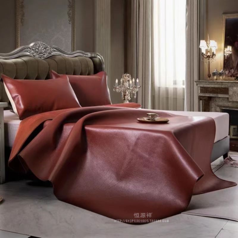 淘宝恒源祥头层牛皮真皮席水牛皮凉席彩绘软席子三件套可折叠印花