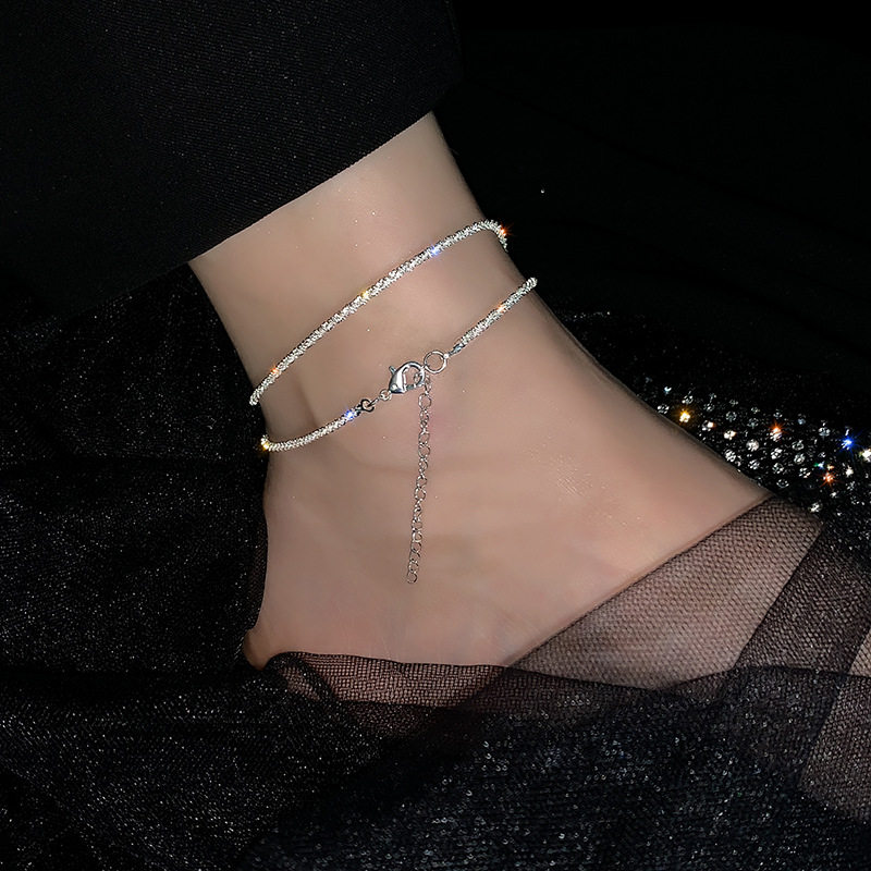 2021年新款“波光粼粼脚链”以其小众设计感和简约百搭风格迅速成为潮人必备单品。灵感源自夜空中的满天星,细链上点缀着微闪锆石,行走间如星光闪烁,波光粼粼,灵动迷人。采用优质合金材质,轻盈舒适,不易过敏,适合日常搭配或度假出行。无论是搭配凉鞋、拖鞋,还是赤脚佩戴,都能为整体造型增添一抹精致亮点。极简设计不挑肤色与穿搭风格,轻松驾驭休闲、甜美或度假风,是提升细节美感的点睛之笔。这款网红脚饰兼具时尚与个性,展现低调而闪耀的独特魅力,成为夏日足部装饰的新宠。