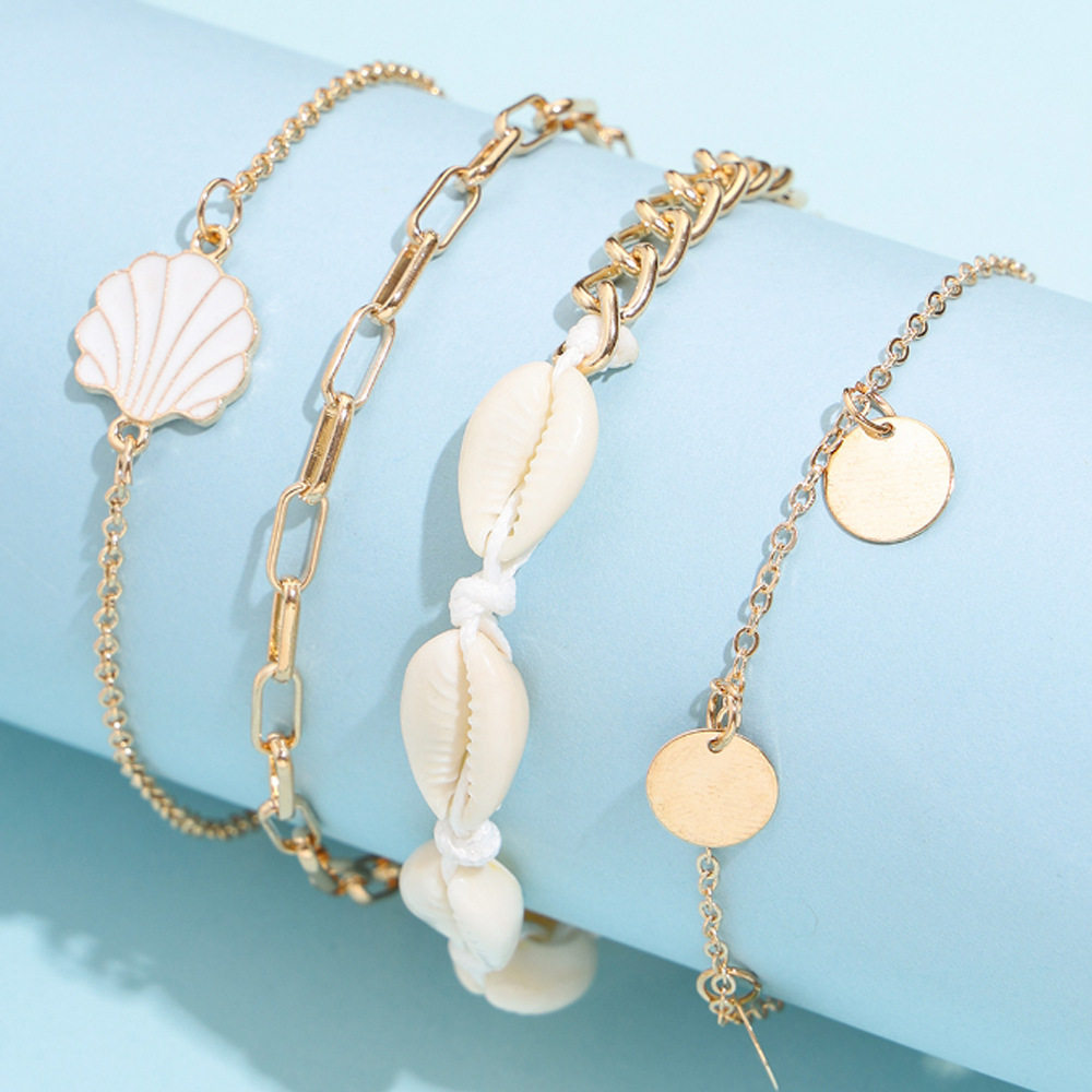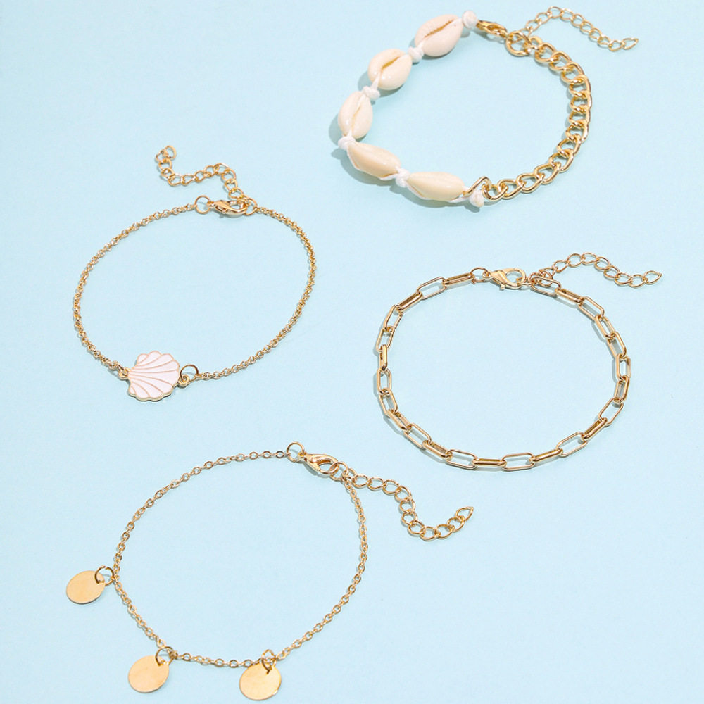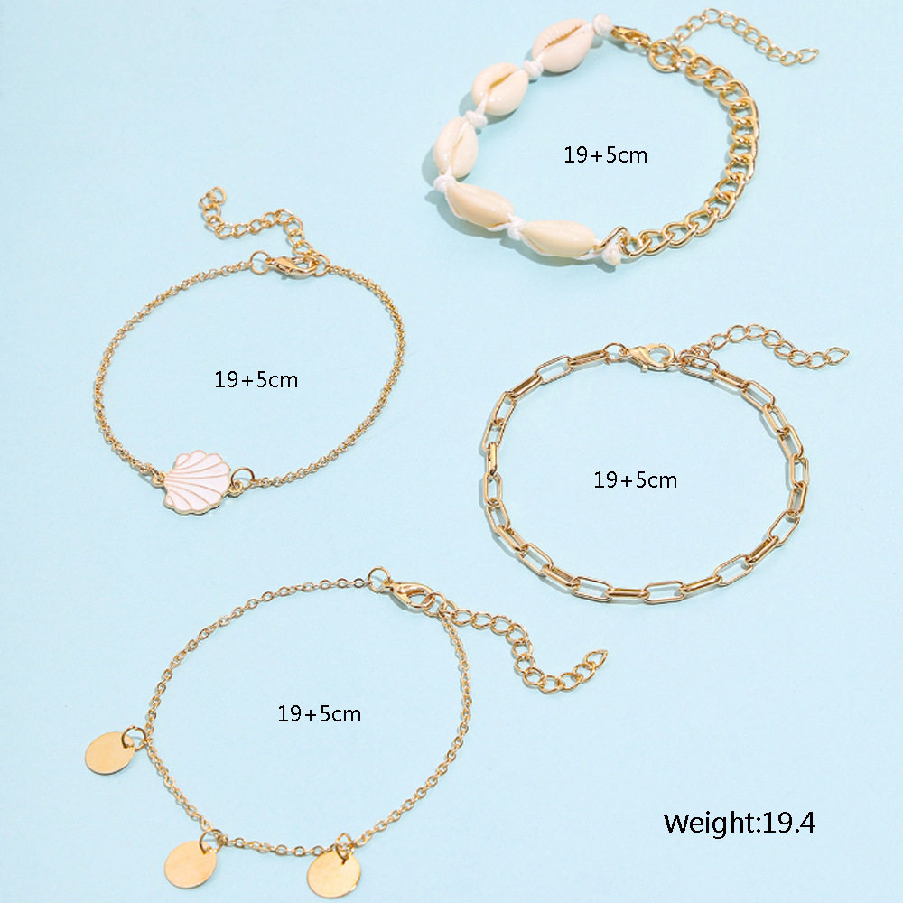 淘宝套装组合脚链 饰品时尚简约多层贝壳滴油扇贝脚饰金属四件套
