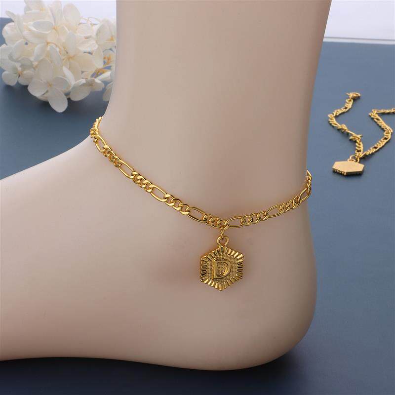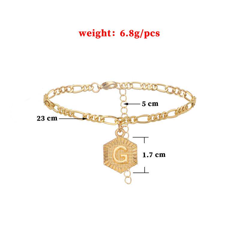 淘宝欧美跨境饰品 26个大写首字母合金吊坠脚链女 几何六边形沙滩脚饰