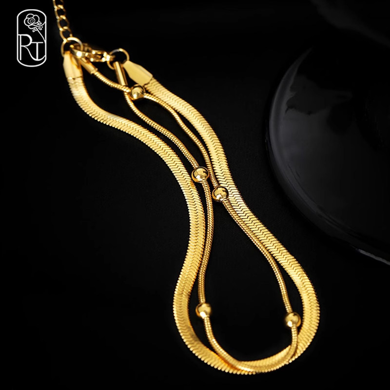 天猫女生脚环蛇骨链脚链简约双层镀24k金足链不掉色脚骨链冷淡风脚饰