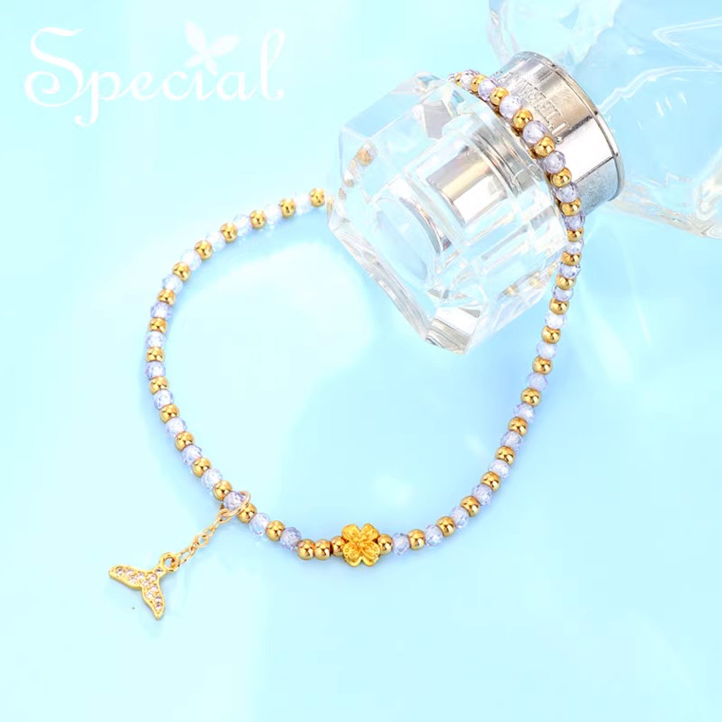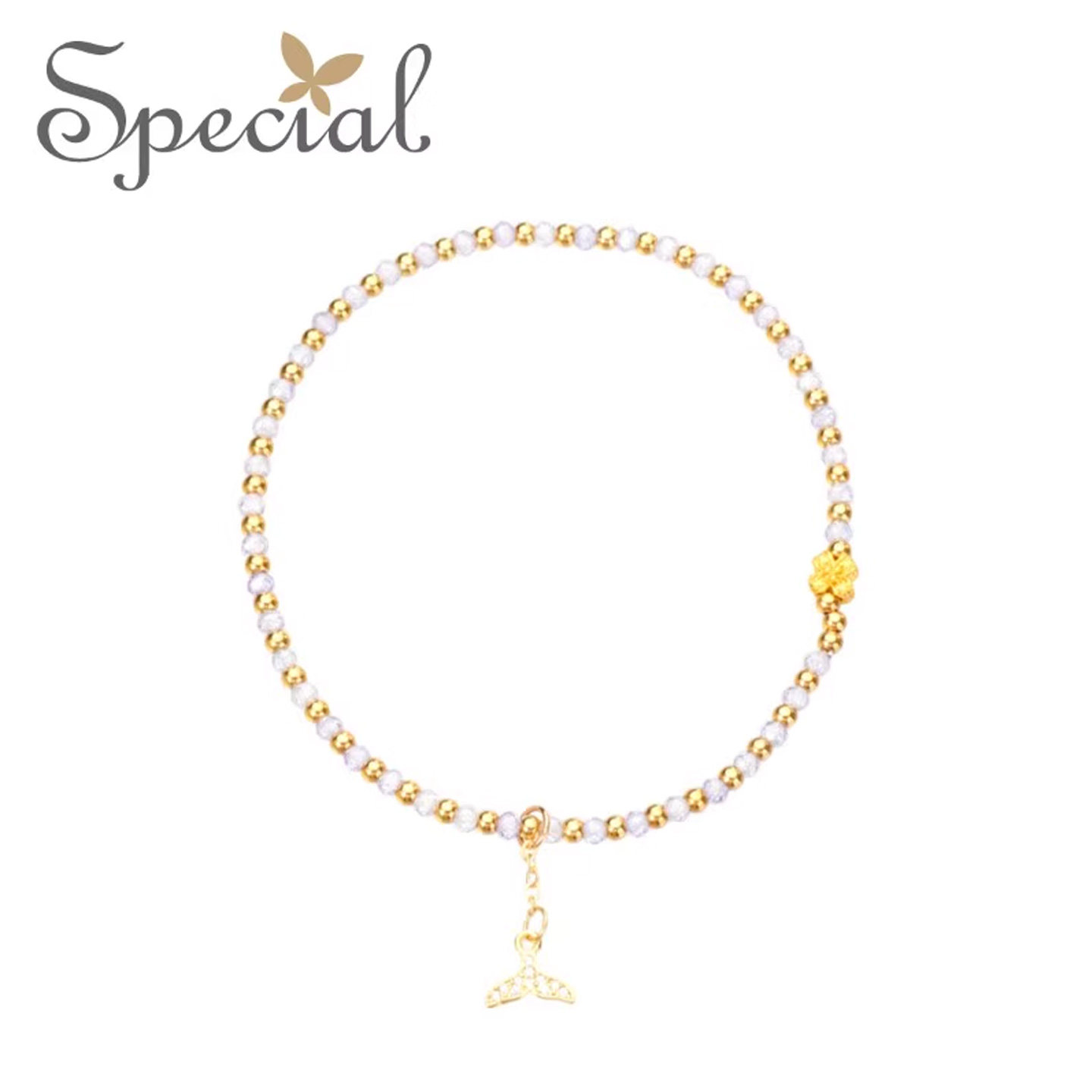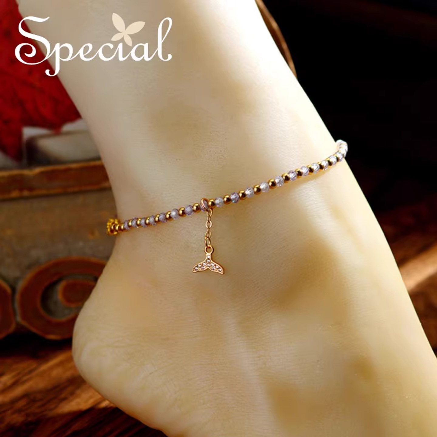 SPECIAL 2026新款欧美轻奢小众设计鱼尾脚链,以独特美学诠释女性优雅魅力。精选天然紫水晶镶嵌于精致金属链条中,色泽深邃迷人,寓意宁静与智慧。鱼尾造型灵动流畅,巧妙贴合脚踝曲线,行走间折射璀璨光芒,尽显低调奢华。采用防过敏材质,佩戴舒适,适合日常搭配或度假出游。无论是搭配凉鞋、短裙,还是作为夏日点睛之饰,皆能凸显个性品味。小众设计避免撞款,彰显独特气质,是追求质感与风格女性的理想之选。SPECIAL,为细节而生,让每一步都闪耀自信光芒。