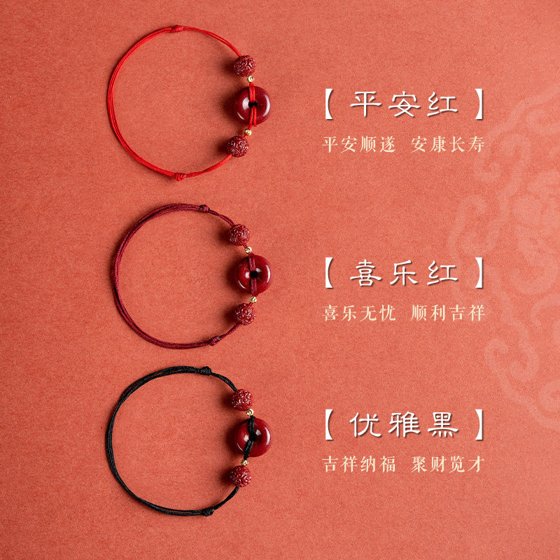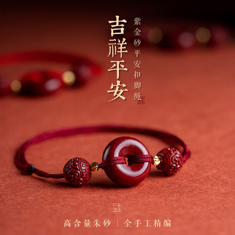 新品网红红绳朱砂平安扣脚链,融合传统古法工艺与现代时尚设计,专为女性打造。精选天然朱砂镶嵌平安扣,寓意驱邪避灾、平安顺遂,搭配精致转运珠,增强好运能量,是本命年必备护身饰品。采用优质红绳编织,柔韧舒适,不易褪色,可自由调节长度,适合多种脚型佩戴。脚链与手链二合一设计,灵活搭配,轻松展现优雅气质与东方韵味。无论是日常穿搭还是重要场合,都能为整体造型增添一抹亮眼点缀。寓意吉祥,颜值与内涵兼具,是送给自己或亲友的贴心好礼,守护平安,转运纳福。