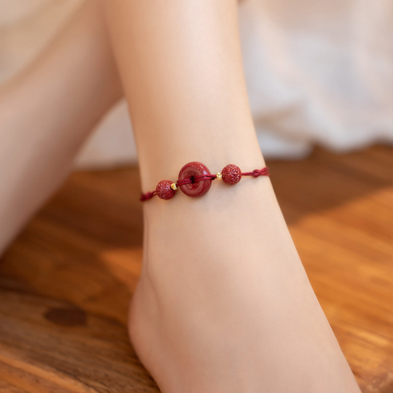 淘宝新品网红a新品红绳朱砂平安扣脚链女脚饰转运珠手链本命年古法脚