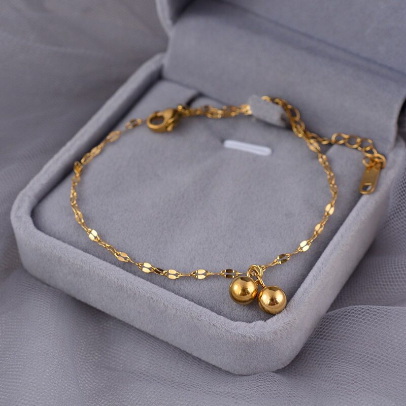 越南沙金不掉色脚链女 镀金转运珠葫芦铃铛脚环个性百搭潮人脚饰