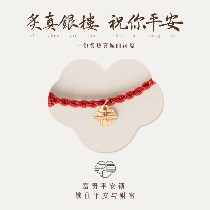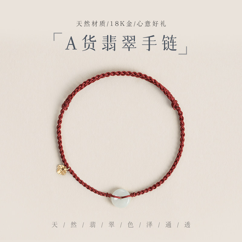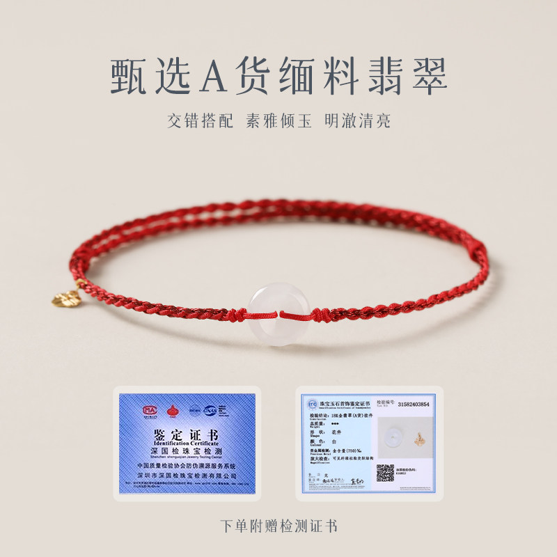 天猫炙真银楼18K金平安锁翡翠平安扣脚链新中式脚绳足链情侣脚饰手绳