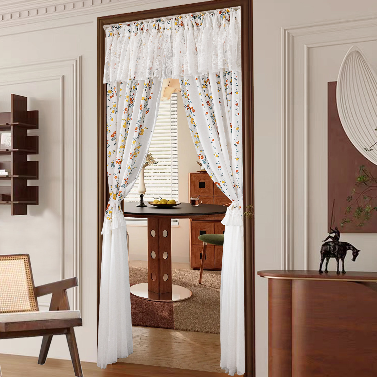 这款免打孔防蚊纱帘,集实用与美观于一体,专为现代家居设计。采用高品质蕾丝面料,复古法式风格,轻盈透光,营造浪漫温馨氛围。无需打孔安装,磁吸或粘贴式设计,轻松悬挂于门框、窗户或隔断处,保护隐私的同时有效防蚊通风。适用于卧室、玄关、阳台或作为空间隔断帘,既实用又提升家居格调。精致的镂空花纹与垂坠感十足的帘身,为空间增添优雅气息,是追求品质生活的不二之选。安装便捷,拆卸无痕,适合租房与自住房使用,轻松打造舒适惬意的居家环境。