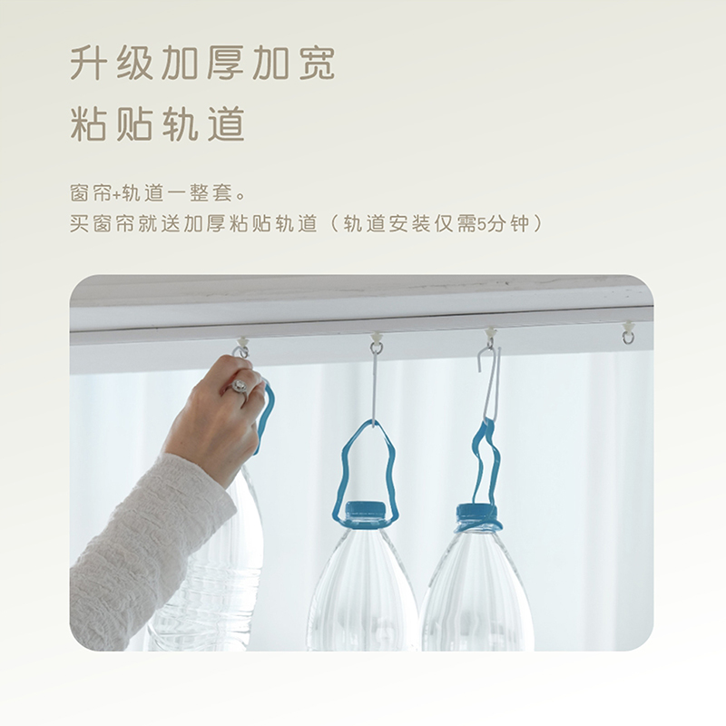 这款飘窗窗帘套装采用奶茶色设计,温柔雅致,完美融入现代家居风格。整套包含粘贴式轨道、挂钩及高品质遮光布帘,免打孔安装,不伤墙面,轻松粘贴即可稳固使用,特别适合租房或不想破坏墙面的用户。轨道顺滑静音,开合顺畅,搭配高遮光面料,有效阻挡强光,防晒隔热,营造舒适静谧的卧室环境。布帘垂感佳,质感细腻,兼具美观与实用性。安装简便,无需工具,几分钟即可完成,是飘窗、卧室、书房等空间的理想选择,为您打造温馨私密的休憩角落。