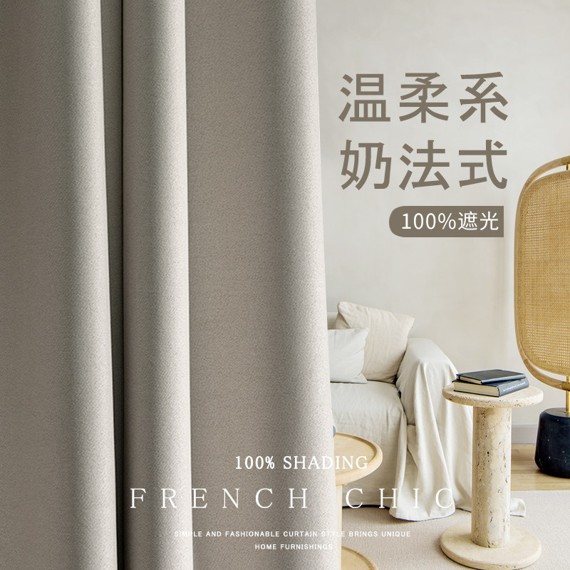 全遮光纯色成品窗帘奶茶色挂钩客厅卧室阳台飘窗出租房便宜防晒布