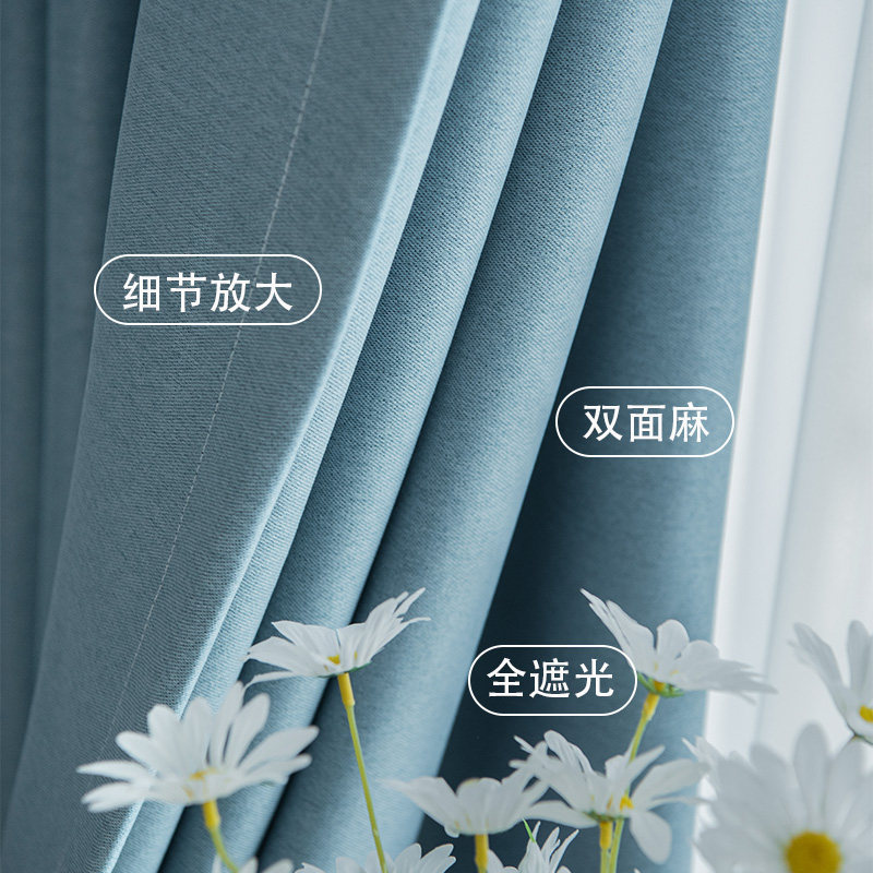 天猫窗帘卧室高级感客厅黄色定制绍兴柯桥加厚棉麻儿童房遮阳成品布料