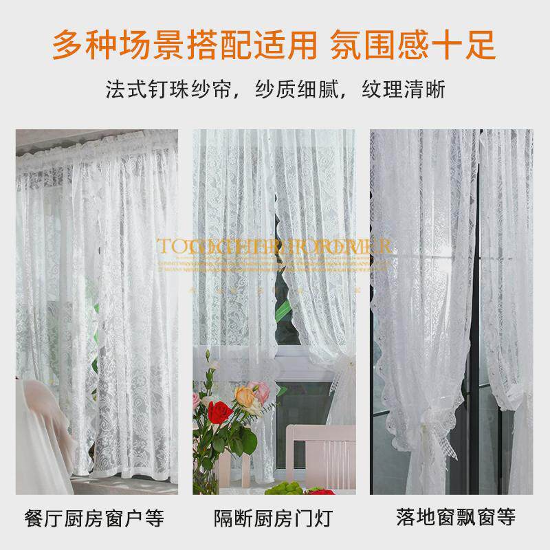 淘宝法式纱帘珍珠飘窗帘免打孔小窗户窗纱蕾丝窗帘纱帘卧室门帘隔新品