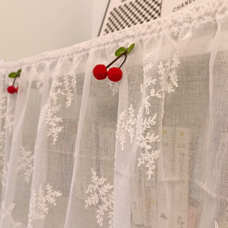 淘宝书架防尘带褶子黏贴式帘子幔头定制帘蕾丝半帘短门帘免打孔帘窗帘