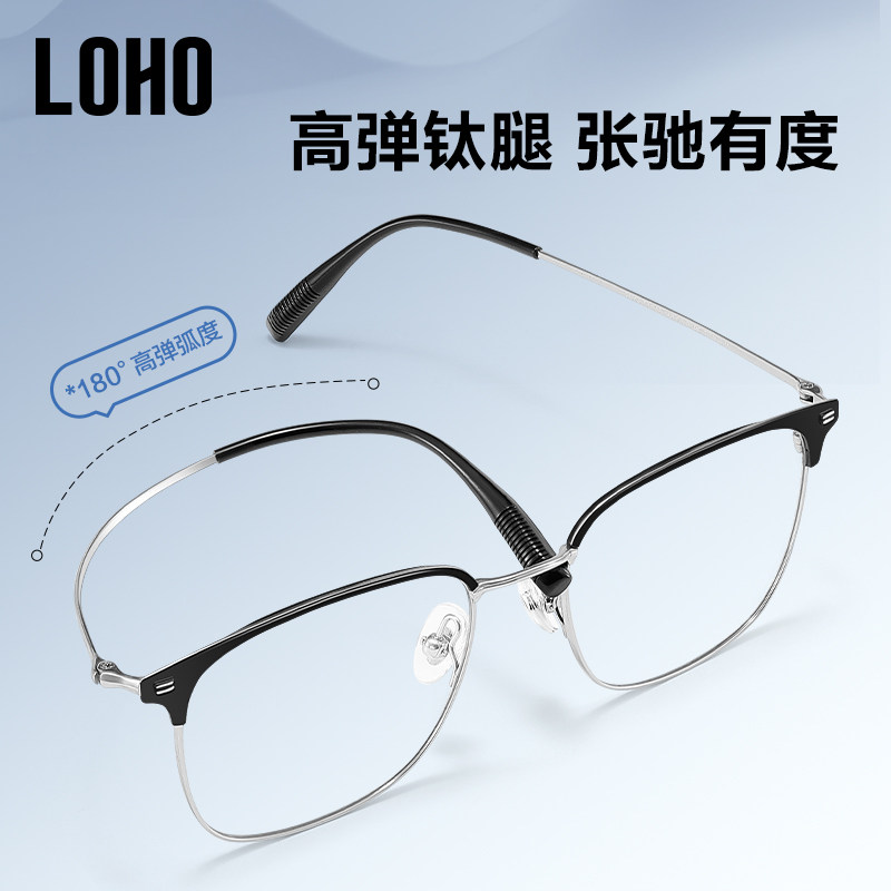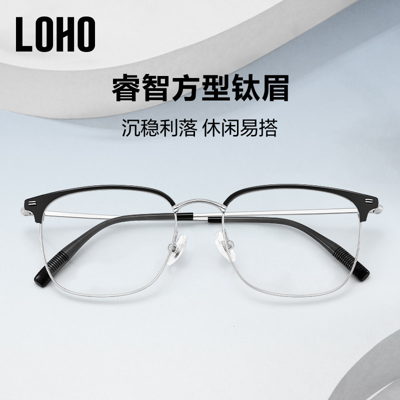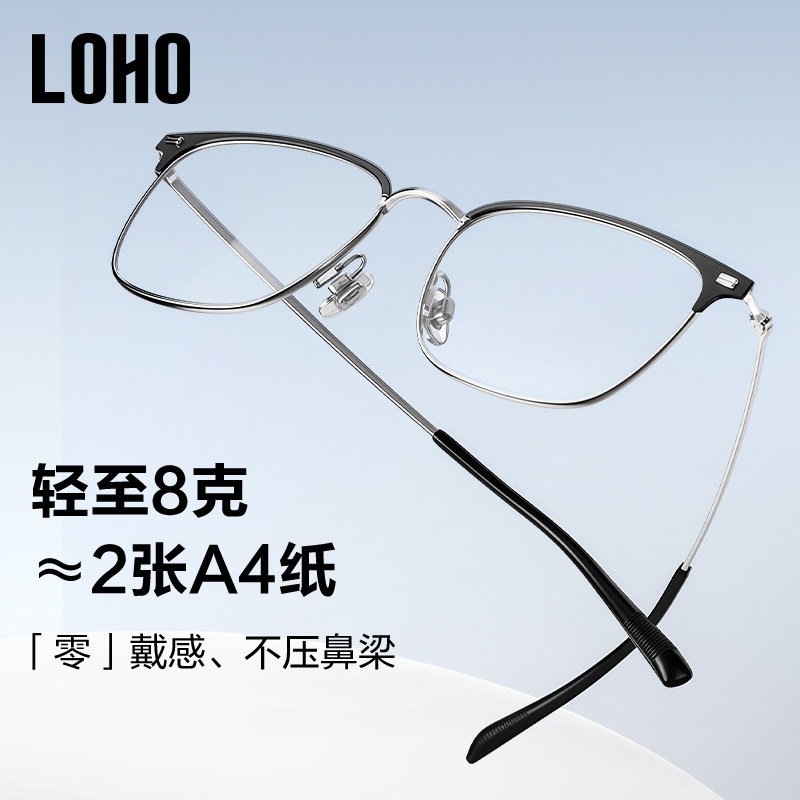 天猫LOHO超轻眉线框纯钛半框近视眼镜男款可配度数防蓝光蔡司镜片眼镜