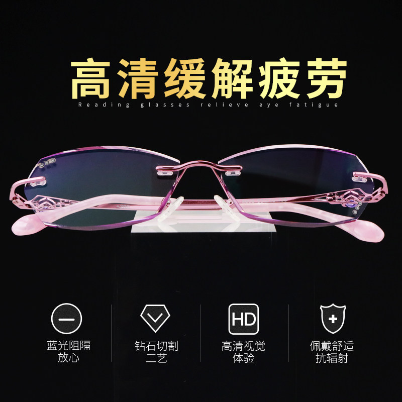 天猫进口无框老花镜女式钻石切边高端减龄日本时尚眼镜原装官方旗舰店