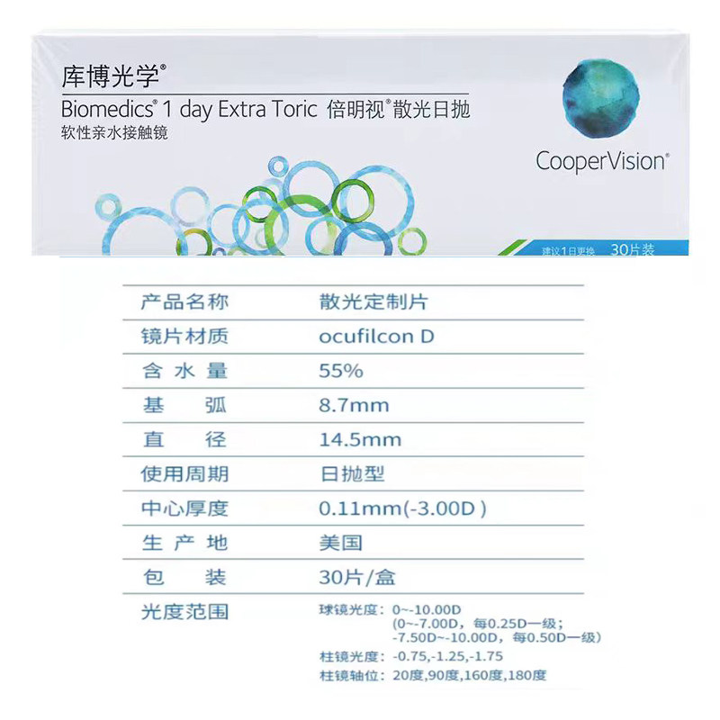 天猫库博光学倍明视散光日抛隐形近视眼镜散光定制片30片装