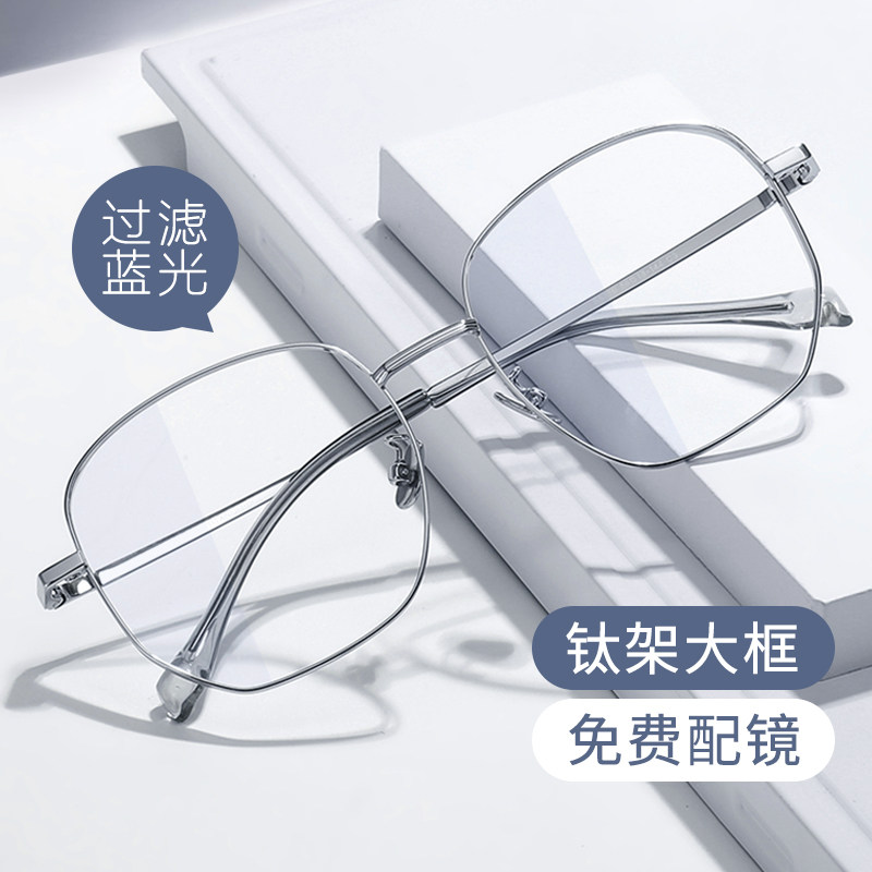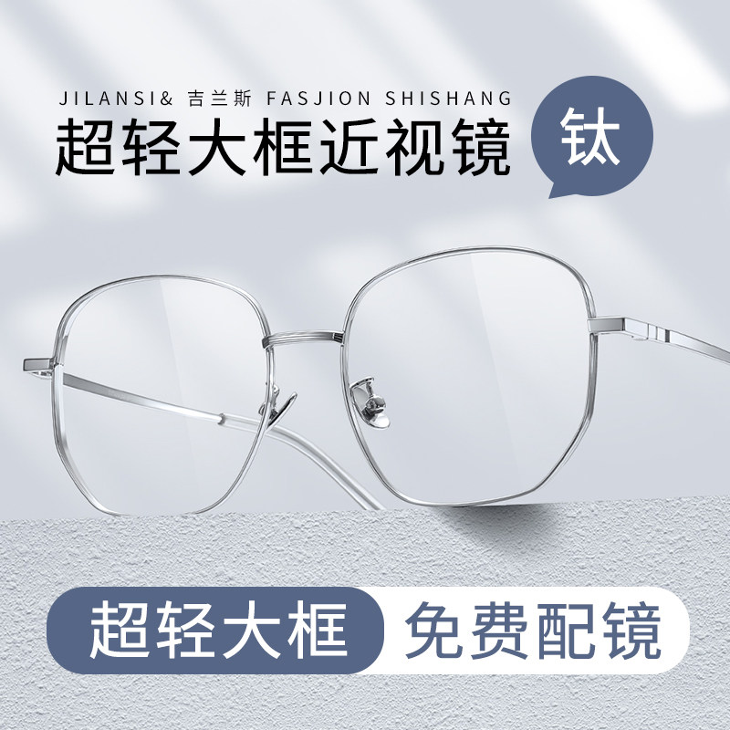 天猫超轻纯钛大脸近视眼镜框男款可配度数防蓝光变色眼睛大框钛架镜框