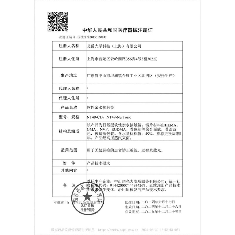 天猫元气散光定制隐形近视眼镜年抛定制远视散光透明片1片保湿透气kd