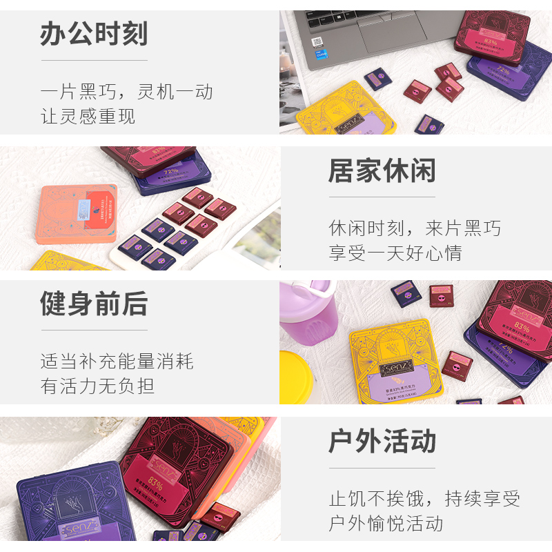 senz心之黑巧克力情绪礼盒,精选优质纯可可脂制成,融合浓郁可可香与细腻口感,带来层次丰富的味蕾享受。每一颗巧克力都匠心雕琢,低糖配方更健康,适合追求品质的休闲时刻。礼盒设计简约雅致,融入情绪概念,寓意传递心意与温暖,是送亲友、恋人或自用皆宜的精致伴手礼。无论是午后小憩、办公解压,还是节日馈赠,都能带来一份治愈与惊喜。senz用心诠释巧克力的情感价值,让每一口都充满温度与关怀。