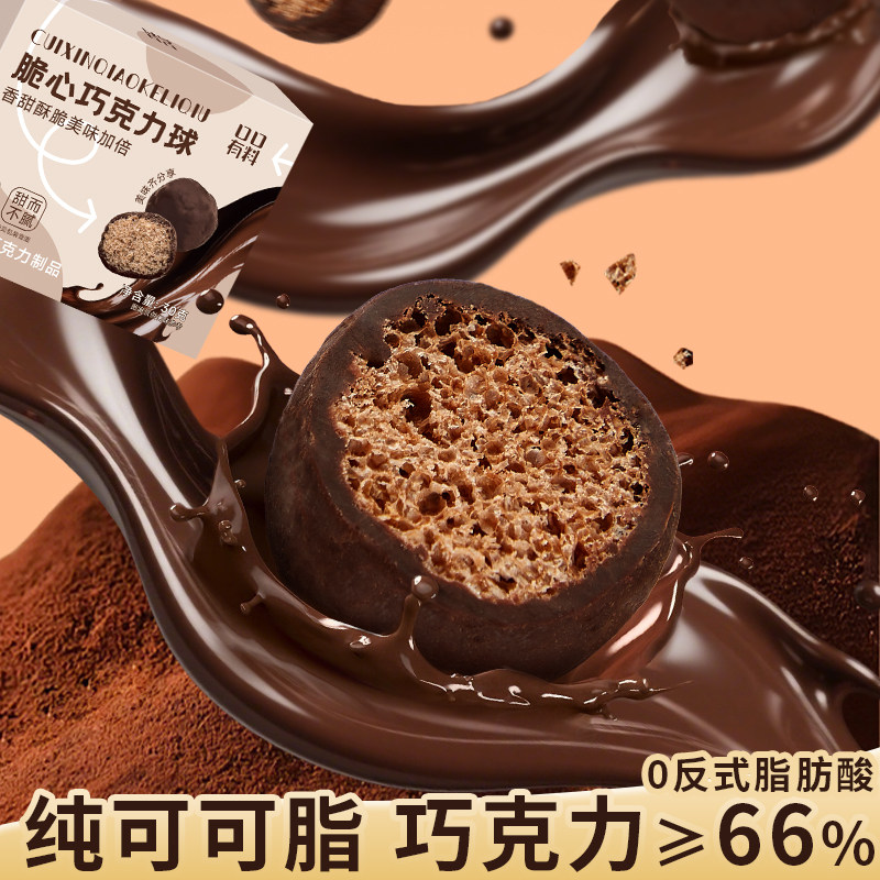 脆心巧克力球是一款融合香浓可可脂与酥脆麦丽素外壳的经典小零食,内馅包裹绵密巧克力豆,入口即化,层次丰富。外层巧克力醇厚丝滑,内里麦丽素轻盈松脆,带来“外柔内脆”的独特口感,深受各年龄层喜爱。采用优质可可脂,不含反式脂肪酸,健康美味兼顾。独立小包装,方便携带与分享,适合年货节囤货、节日送礼、办公室茶歇或日常休闲零食。散装批发更实惠,是走亲访友、年节礼盒的优选佳品。无论是自享还是馈赠,脆心巧克力球都能传递甜蜜心意,点亮欢聚时光。