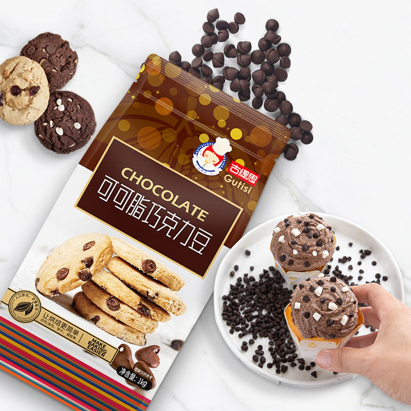 天猫古缇思可可脂耐高温烘焙原料烤巧克力豆散装批发1kg
