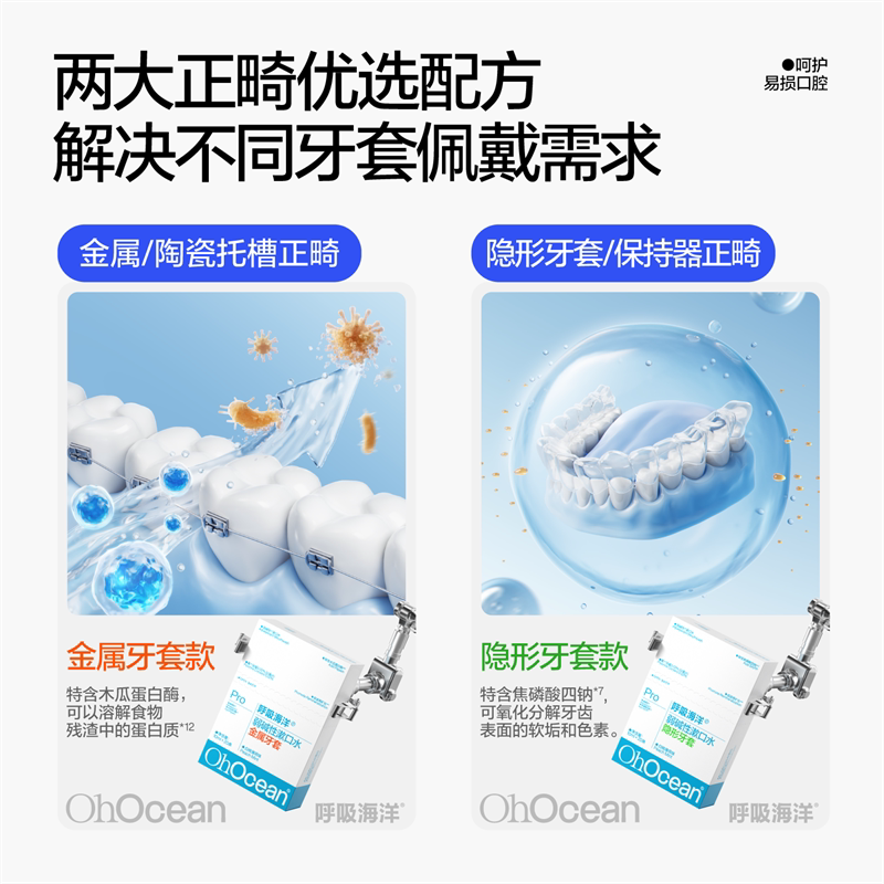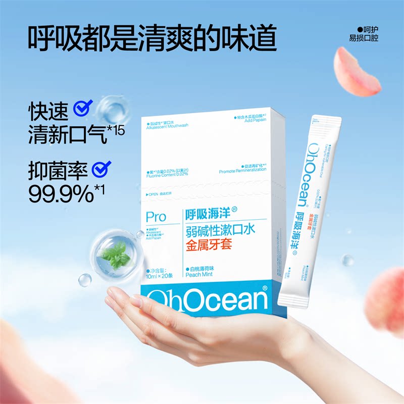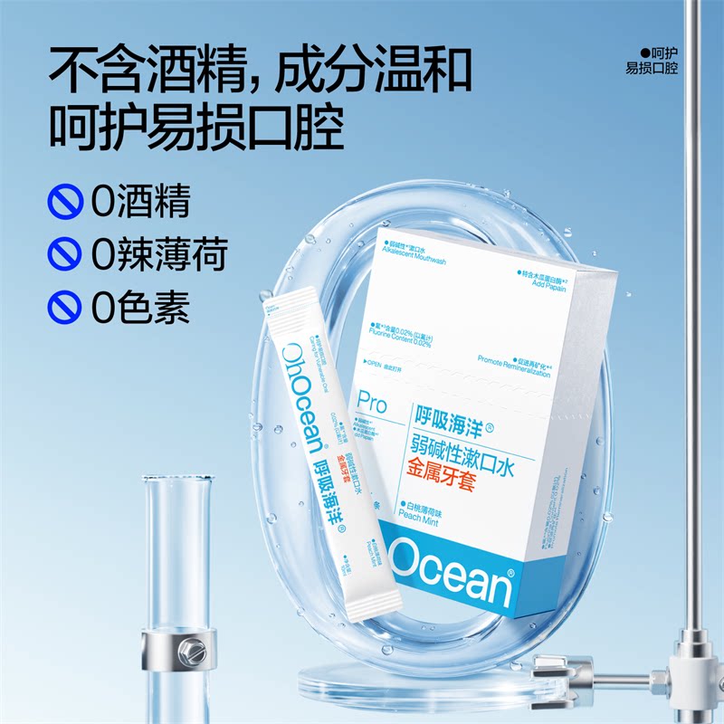 天猫呼吸海洋正畸牙套漱口水青少年专用弱碱含氟防蛀便携一次性小包装