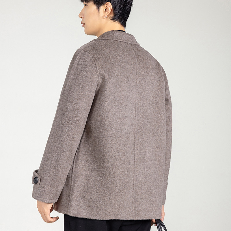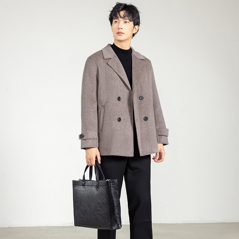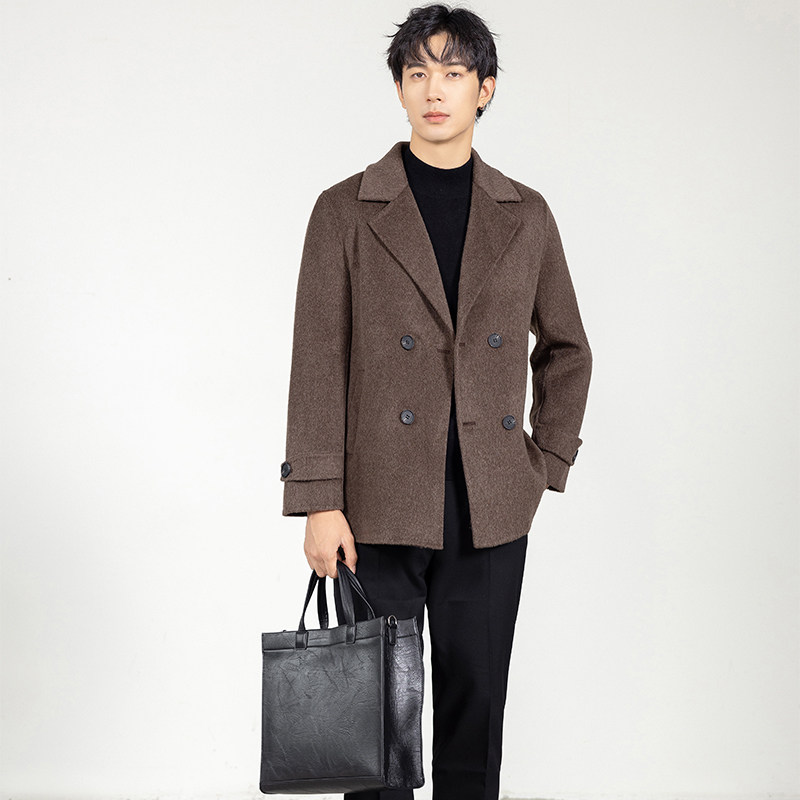 新款秋冬季毛呢大衣男士纯羊毛西装领双面呢时尚休闲无羊绒外套潮