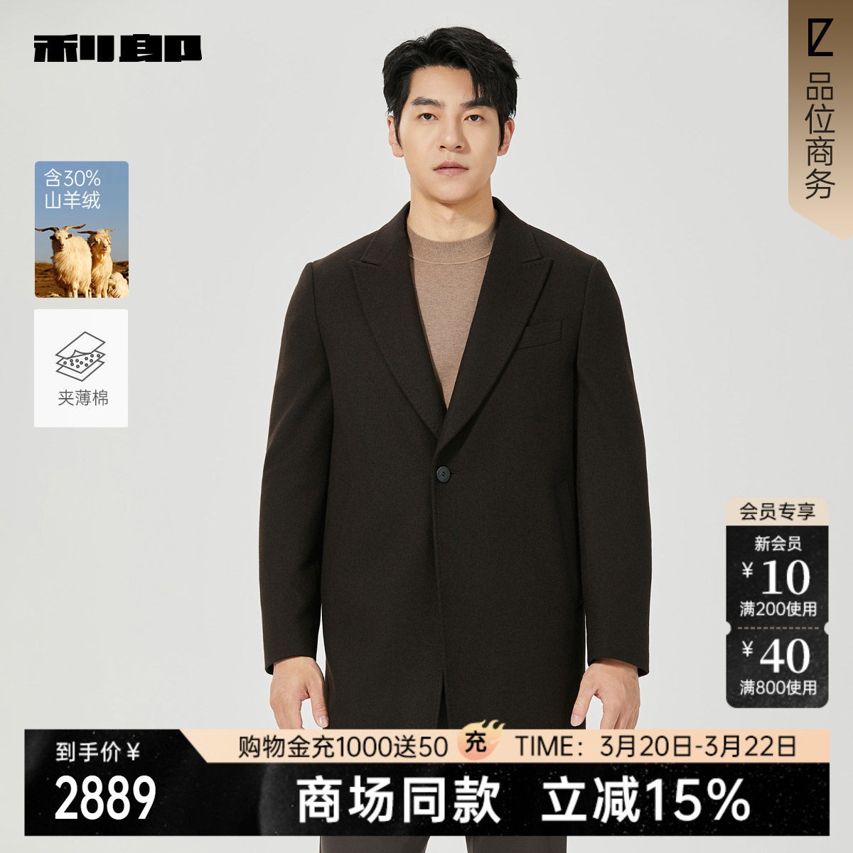 【商场同款】利郎中长款羊绒大衣男士冬季毛呢25DYR5051/2/3Y,精选优质羊绒与精纺毛呢混纺面料,触感柔软、保暖性佳,兼具挺括质感与垂坠感。经典中长款剪裁,线条利落,修饰身形,适合商务通勤与日常穿搭。简约大方的设计融入精致细节,如立体剪裁、隐藏式口袋与顺滑内衬,彰显品质格调。多色可选,百搭实穿,轻松应对冬季寒风。商场同款品质,性价比出众,是男士冬季衣橱的理想之选,兼顾保暖、舒适与时尚,展现成熟稳重气质。