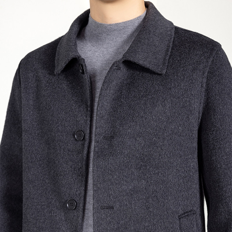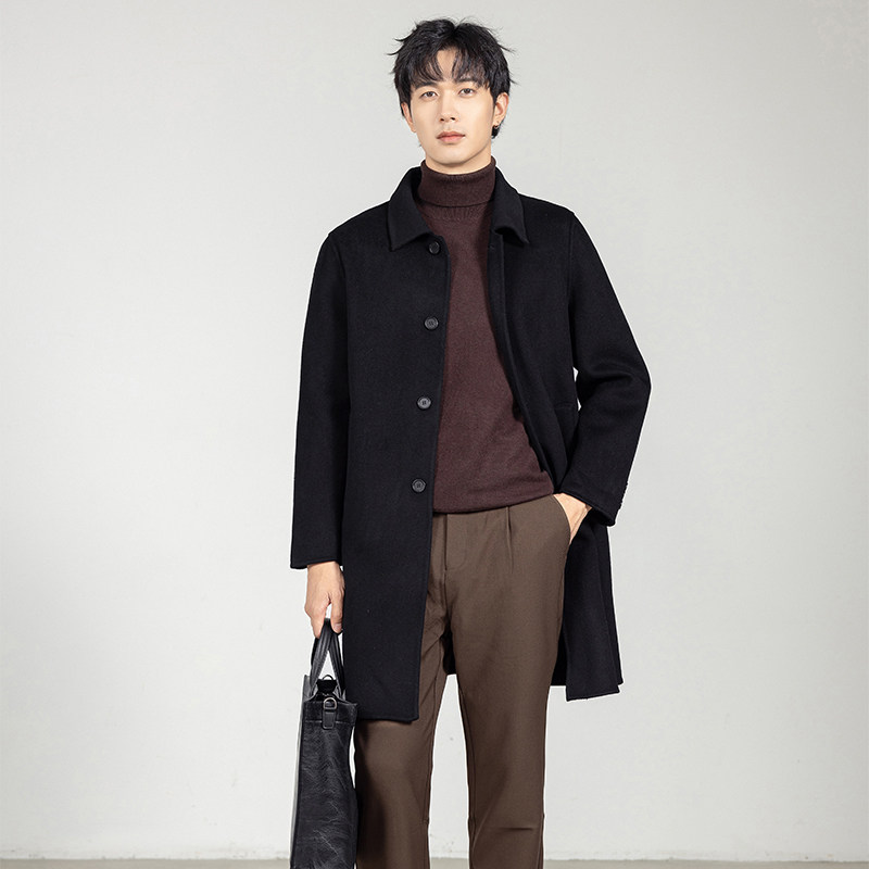 新款秋冬季毛呢大衣男士纯羊毛西装领双面呢时尚休闲无羊绒外套潮