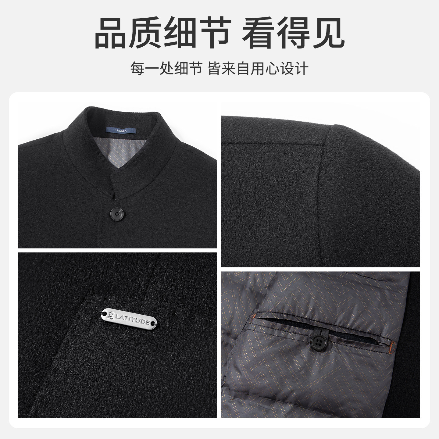 天猫[羊毛蚕丝/云感羽绒]梦特娇男毛呢大衣冬装立领夹克鹅绒保暖外套J