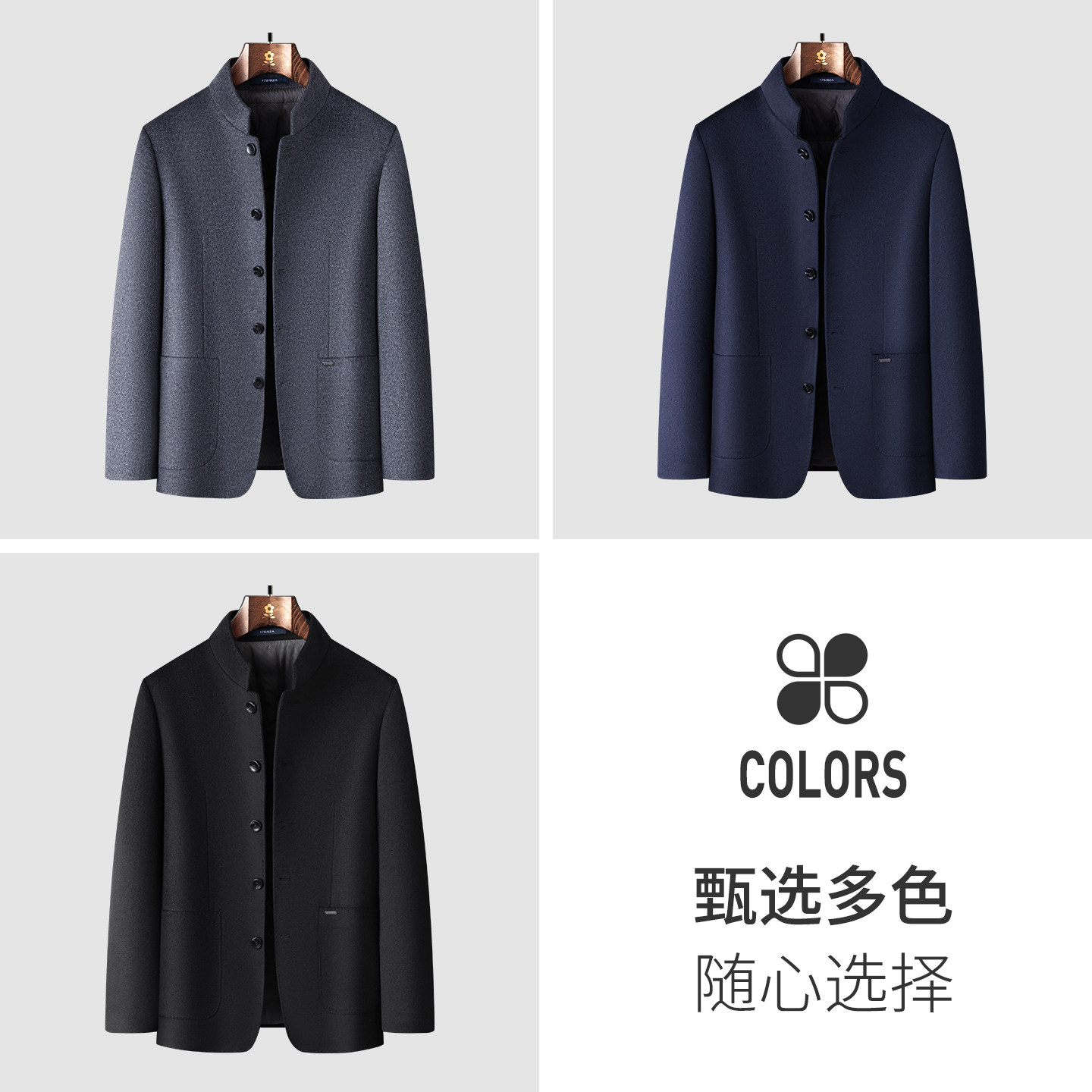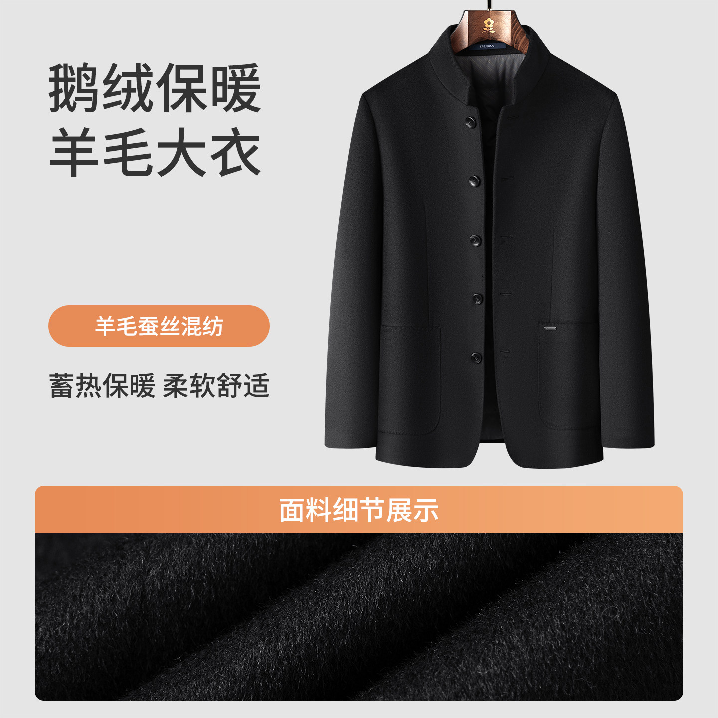 冬季新款原创设计短款羊毛大衣男士新中式立领中山装宽松休闲唐装