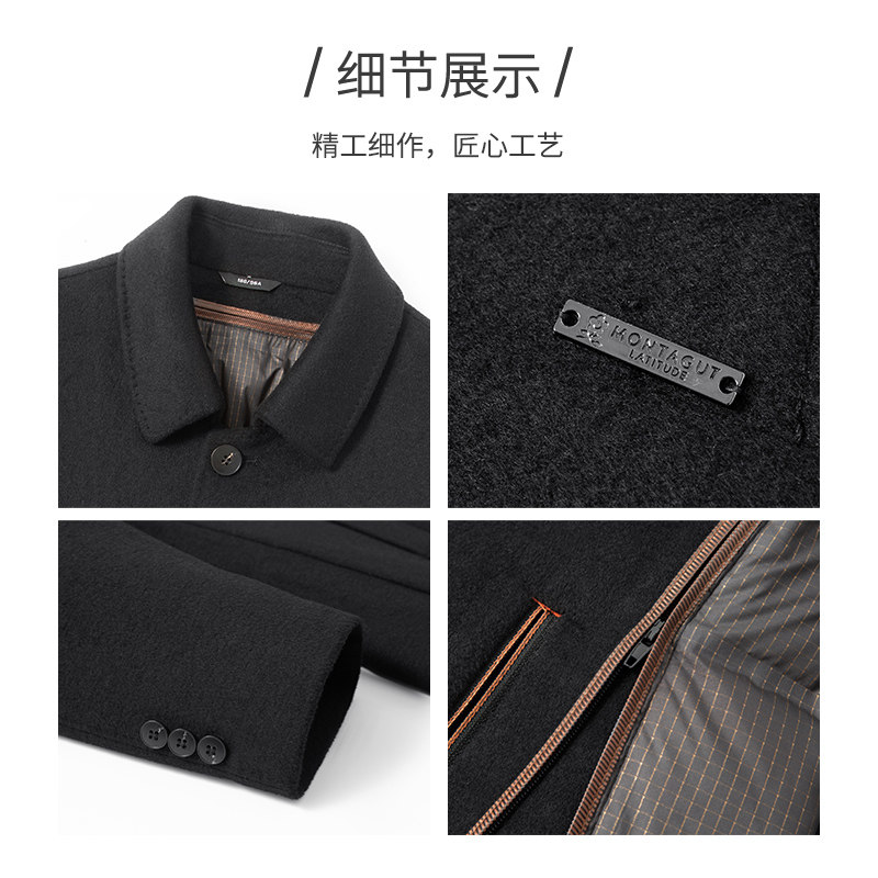 梦特娇冬季羊毛呢大衣男翻领羽绒外套J,精选85%优质鸭绒填充,搭配绵羊毛呢面料,兼具保暖性与挺括质感。内胆可拆卸设计,一衣多穿,轻松应对不同温差场景。经典翻领剪裁,简约大气,彰显男士儒雅风度。立体剪裁贴合身形,活动自如不束缚。细节处精工细作,拉链顺滑耐用,口袋实用美观。无论是通勤还是休闲出行,都能展现从容气质。梦特娇品牌品质保证,是冬季衣橱的理想之选,温暖与风度并存,演绎都市型格风范。