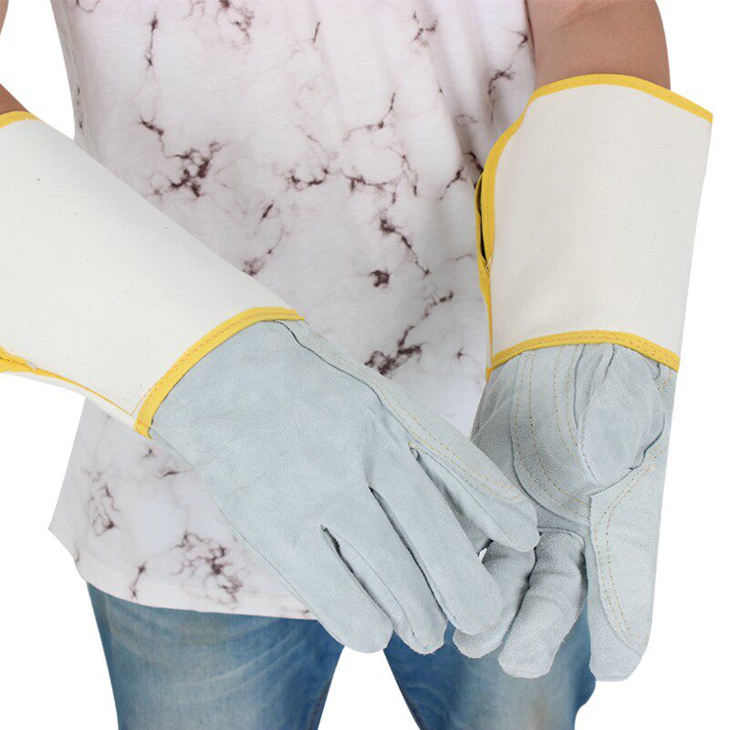 淘宝牛皮电焊手套焊工防火耐用防刺焊接手套帆布袖加长劳保耐高温手套